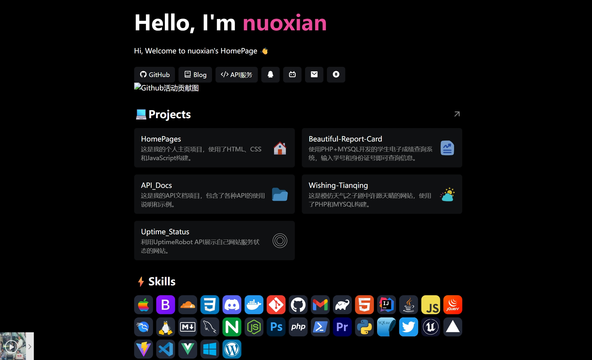 这是一款个人主页模板的展示与下载信息。作者首先提供了成品预览图,并附有在线预览站点的链接(https://nuoxiana.cn/)。同时,该模板的源文件已提供下载,用户可通过蓝奏云链接获取“Homepage-main.zip”文件。 ...